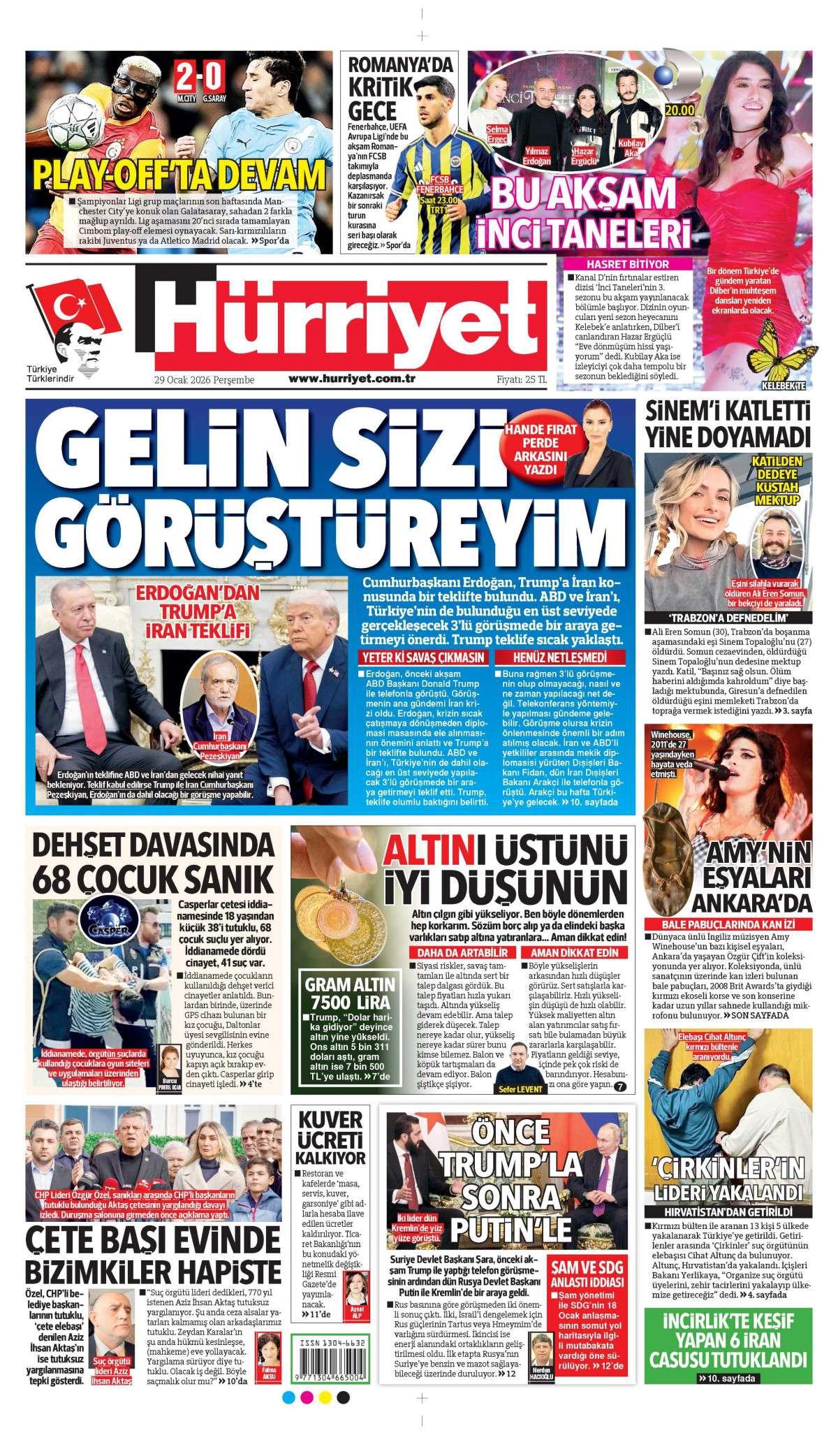 Hürriyet Gazetesi 30 Ocak 2026 Günü Gazete Manşetleri